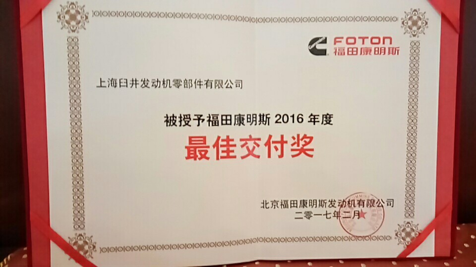 2017年2月24日,在福田康明斯发动机有限公司召开的供应商大会上,上海臼井发动机零部件有限公司再次获得表彰,...